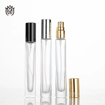 Tapa de aluminio transparente recargable de fábrica, botella de vidrio redonda y cuadrada con fragancia de Perfume de 10ml con bomba de tornillo