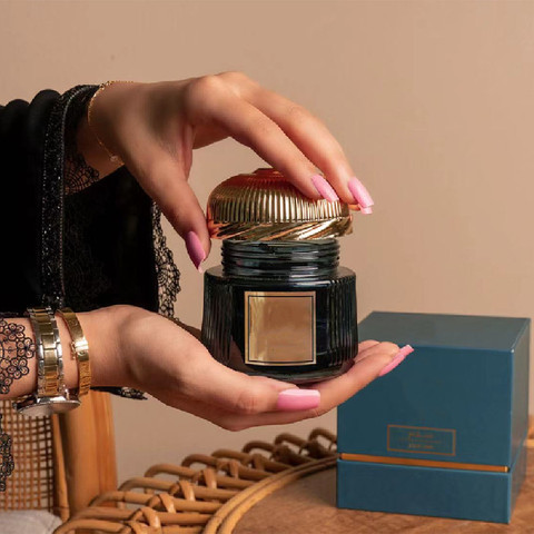 Produttore tappo di plastica personalizzato 150ml barattolo di vetro colorato di incenso Bakhoor